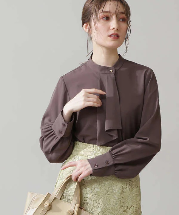 N.で人気のボウタイ風長袖ブラウス。詰まった首元に甘すぎないボウタイ風デザインがポイントです。結び直しが必要ないので着やすさも抜群です。柔らかい素材で着心地が良く、ウエストインを品よくまとめてくれます。OFFの日はデニムカジュアル、ONスタイルはキレイめスカートやパンツとも着回しできます。