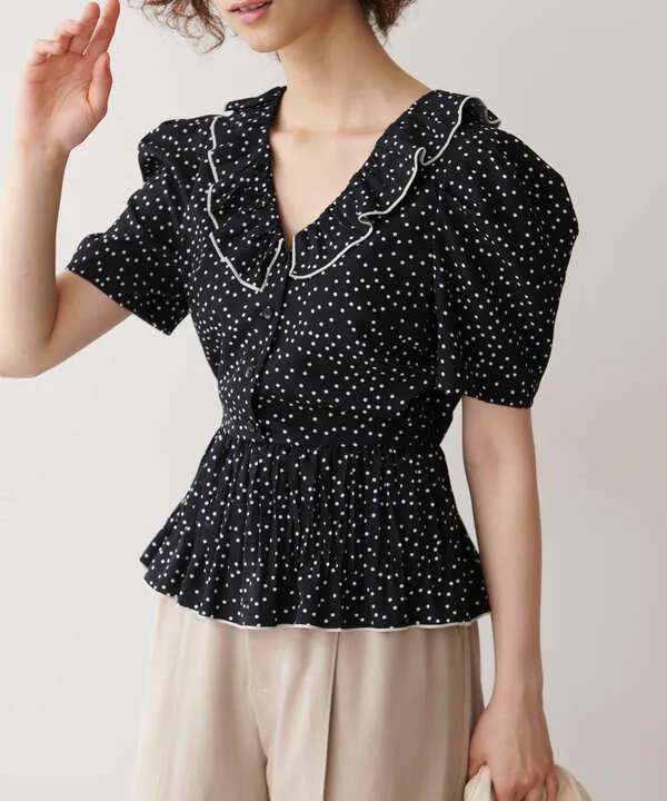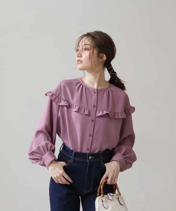 前後でフリルトリミングを施したフェミニンな雰囲気のブラウス。さらっとした柔らかい素材にヨークから二の腕まで繋げたフリルデザインが華奢見えポイント。甘いフリルディテールでも襟ぐりをすっきり仕上げているので取り入れやすくなっています。ふんわりとしたスリーブは袖口にボリュームがたまるようなフォルム感も特徴。カジュアルにもキレイめなボトムにもON/OFFに合わせて着回しできる便利なアイテムです。