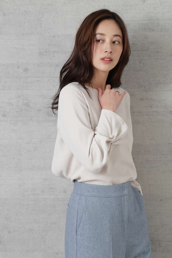 袖口タックにパールのアクセサリーをあしらったレディライクなプルオーバーブラウス。すとんとしたボックスシルエットは着心地もよく、ボトムスを選ばず多彩なコーディネートが楽しめます。