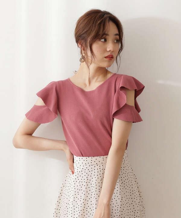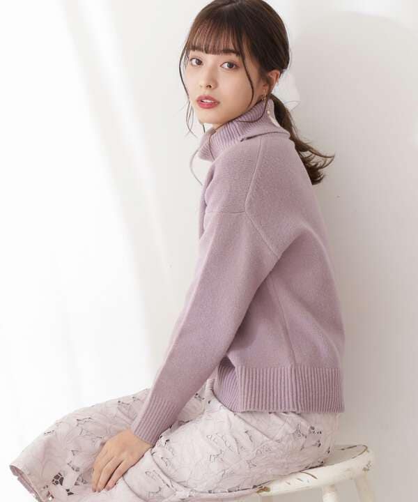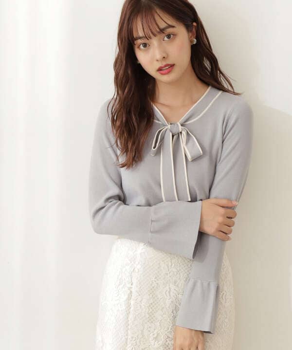 フロントにかがりステッチを施した今季らしいクラシカルなセットアップです。ポロ衿風のトップスはステッチからさりげなくのぞくラメテープが上品なアクセントになります。スカート部分はウエストゴム仕様、トップスとインしてもおしゃれに見えるランダムリブを取り入れました。ニット素材なので着心地が良く、女性らしいシルエットを演出します。