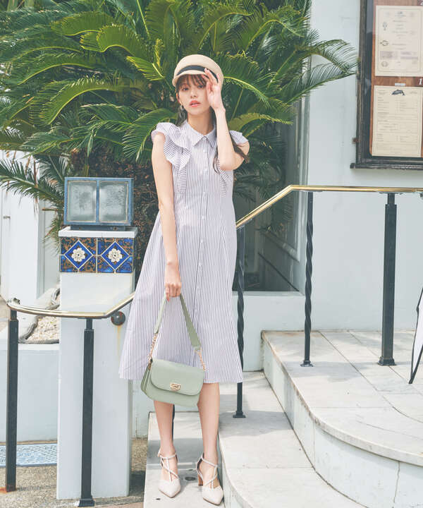 トレンチコートのようなミニ丈のコートワンピース。袖にタックを入れてボリュームをだし、袖口に向かってボリュームが少なくなっていくスリーブの形が可愛いデザイン。袖口のベルトを締めていただくと、より袖のボリュームが強調されてフリルのような袖口になります。腕を少したくし上げて、七分袖のように着るのも◎。ウエストベルトをすると自然とシェイプし、フィット&フレアのシルエットを綺麗に演出します。前を開けてミドル丈のコートとしてや、中にタートルトップスとレイヤードしてミニ丈ワンピースとしても着用できます。