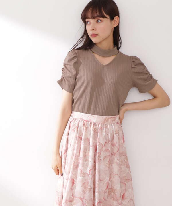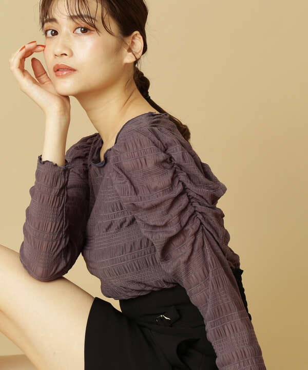 シアーギャザースリーブリブカットソー