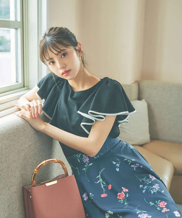 大胆なラッフルスリーブがブラウス見えする品のいいカットソー。身頃はカットソー素材、袖はブラウス素材の軽やかな風合いで仕上げています。ラッフルスリーブのフチを配色でアクセントをつけ、動きを高めるデザインに。デートやオフィスコーデはもちろん、デイリースタイルを華やかにアップデートしてくれます。