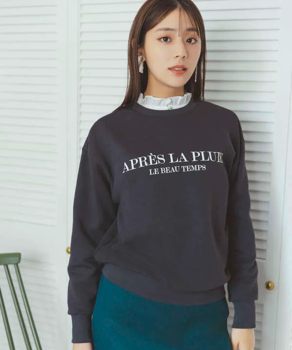 カジュアルすぎず、大人っぽくキレイめカジュアルにこなせるように、クラシカルなフォントでロゴをいれた裏毛プルオーバー。少し大きめのサイジングで、ゆったりとしたリラックス感のあるシルエット。袖口のリブは長めにすることで、定番の裏毛アイテムも今っぽくこなせる1枚に仕上げました。ロゴは、フランス語のことわざで「雨のあとはよい天気」という意味。シンプルコーデのハンサム派にも、甘めにこなすフェミニン派にもおすすめです。