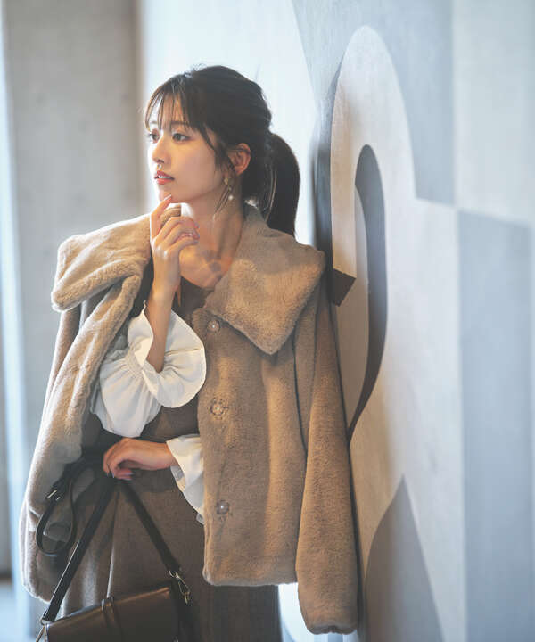ステッチを無くしてキレイ目に仕上げたショートダウンコートです。比翼のシンプルな仕立ては風を通しにくく防寒性もあります。ポケット部分のカシメドットがきらりと光るワンポイントです。ダウンコート内側のウエスト部分にドローコードをつけているのでお好みでフォルム調整できます。また、フード周りのファーはお好みで取り外し可能です。